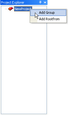 If you start with an empty project, you can add new items to it by right-clicking on the project name in the Project Explorer and selecting either "Add Group" or "Add Rootform".