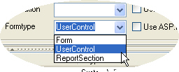 After you selected a form in the Project Explorer, you can view and edit its properties in the main program window. If you want to turn a form into a user control (or vice versa) simply select the desired type from the "Formtype" dropdown list.