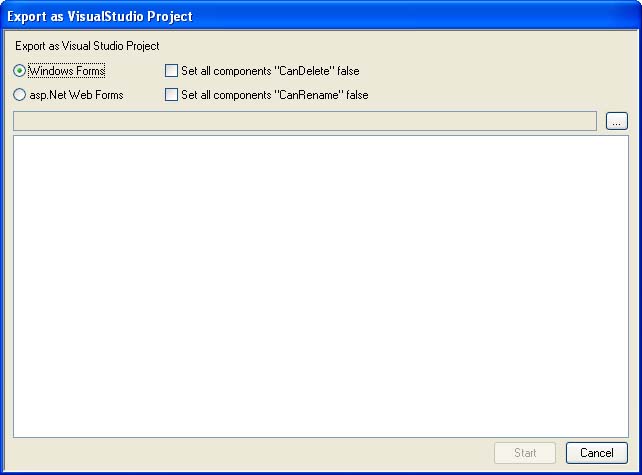 The export is performed in the Form Manager. Choose . The "Export as Visual Studio Project" dialog appears.