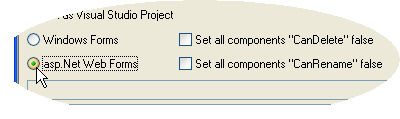 form.suite4.net projects can be exported as a Visual Studio .NET project in the language of your choice (currently C# and Visual Basic .NET are supported). Additionally, you have the option of converting the Windows Forms project into an ASP.NET Web Forms project if this should be required.